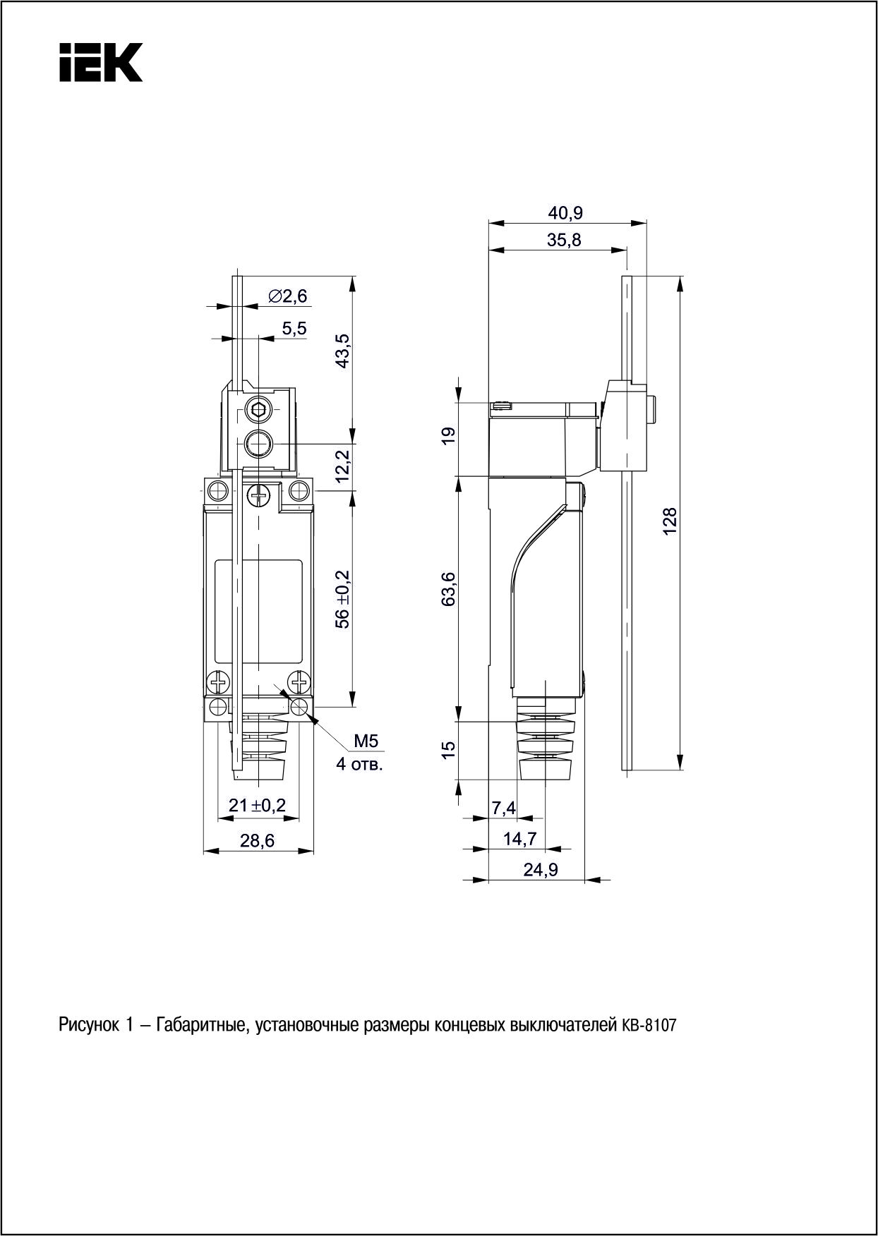 Выключатель концевой КВ-8107 регулируемый стержень IP65 ИЭК