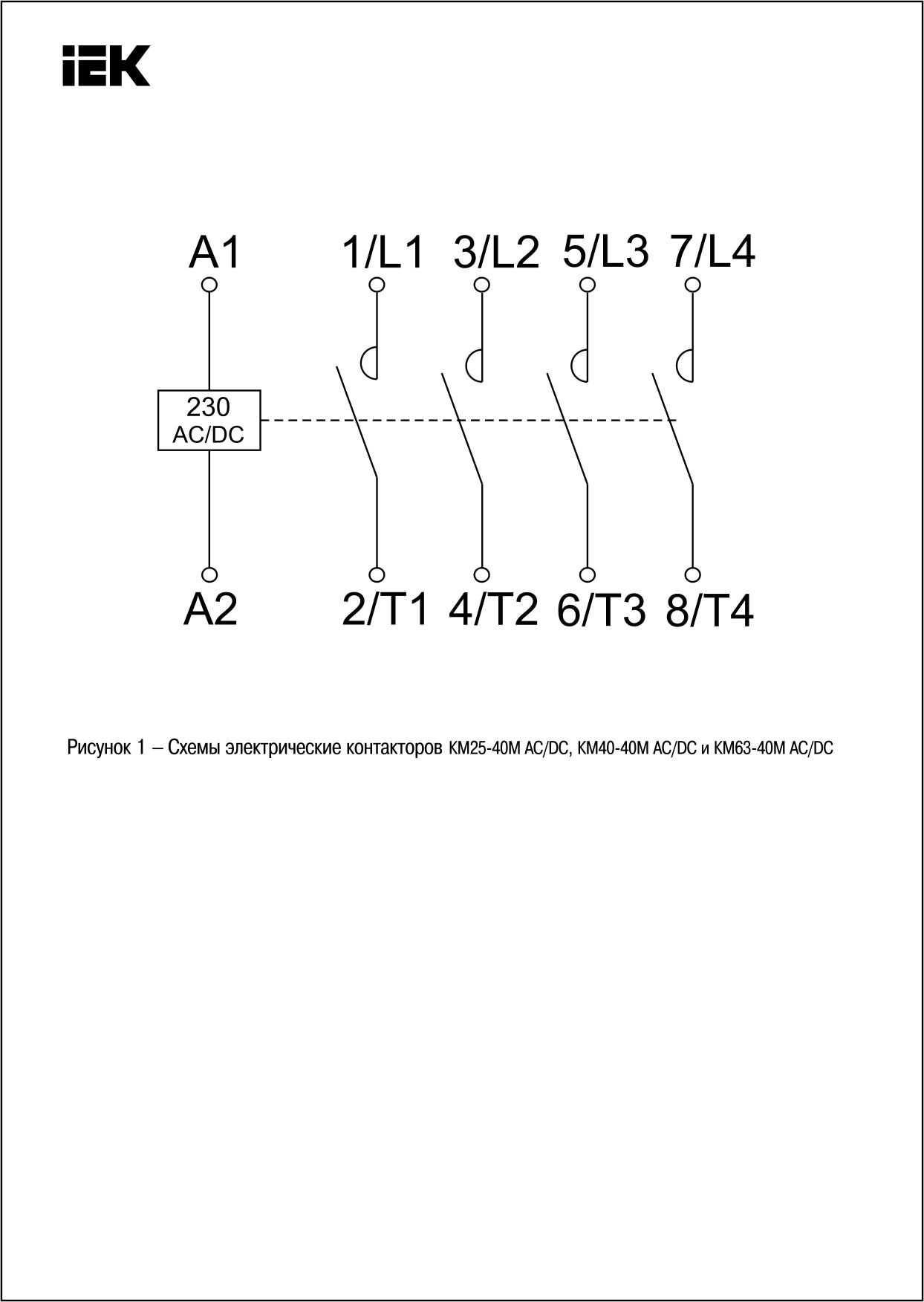 Универсальное питание катушки управления – переменный или постоянный ток (КМ25-40М, КМ40-40М, КМ63-40М).