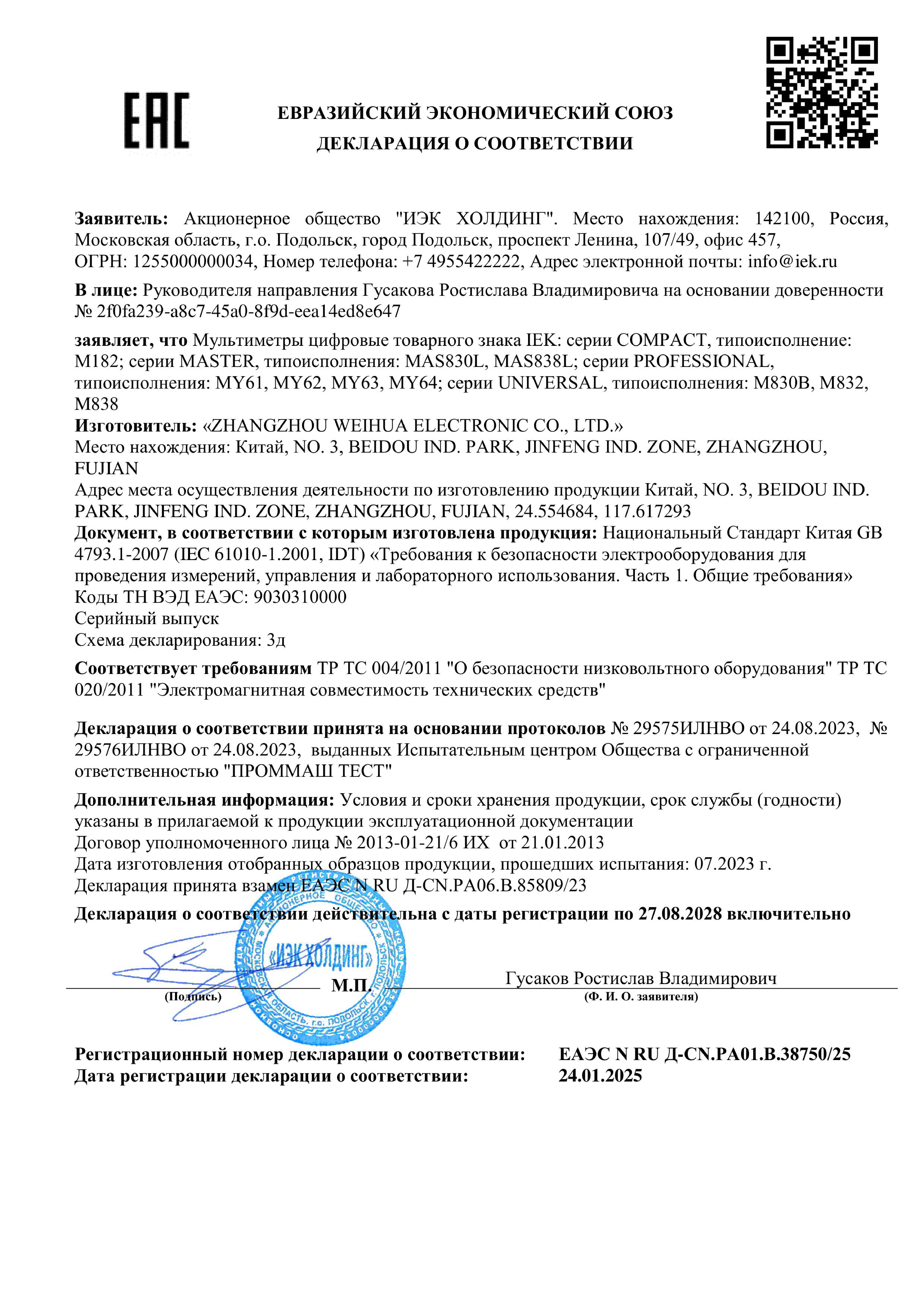 Мультиметр цифровой Master MAS830L ИЭК