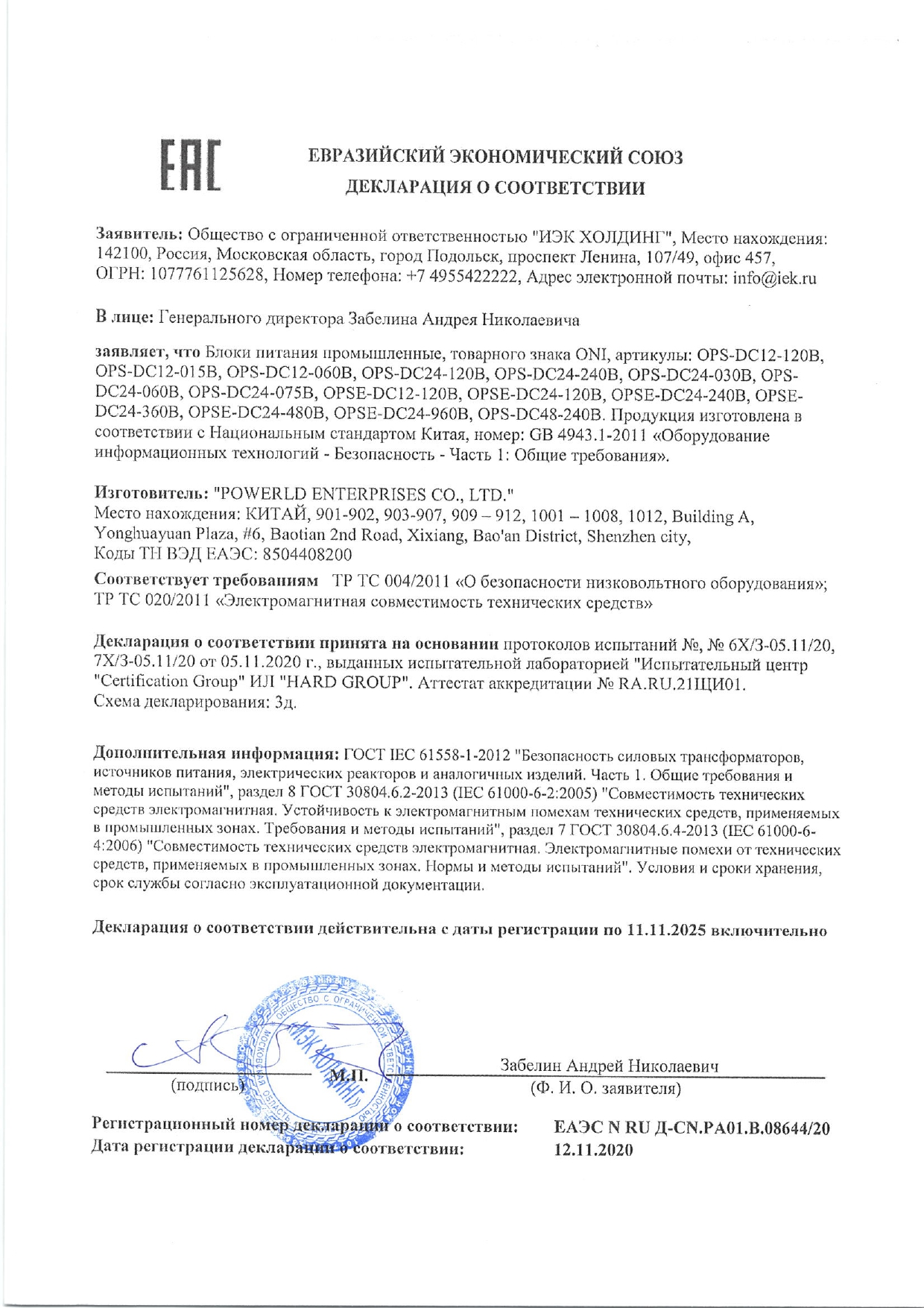 Блок питания OPSE с расширенными характеристиками 220В AC/24В DC 5А 120Вт ONI