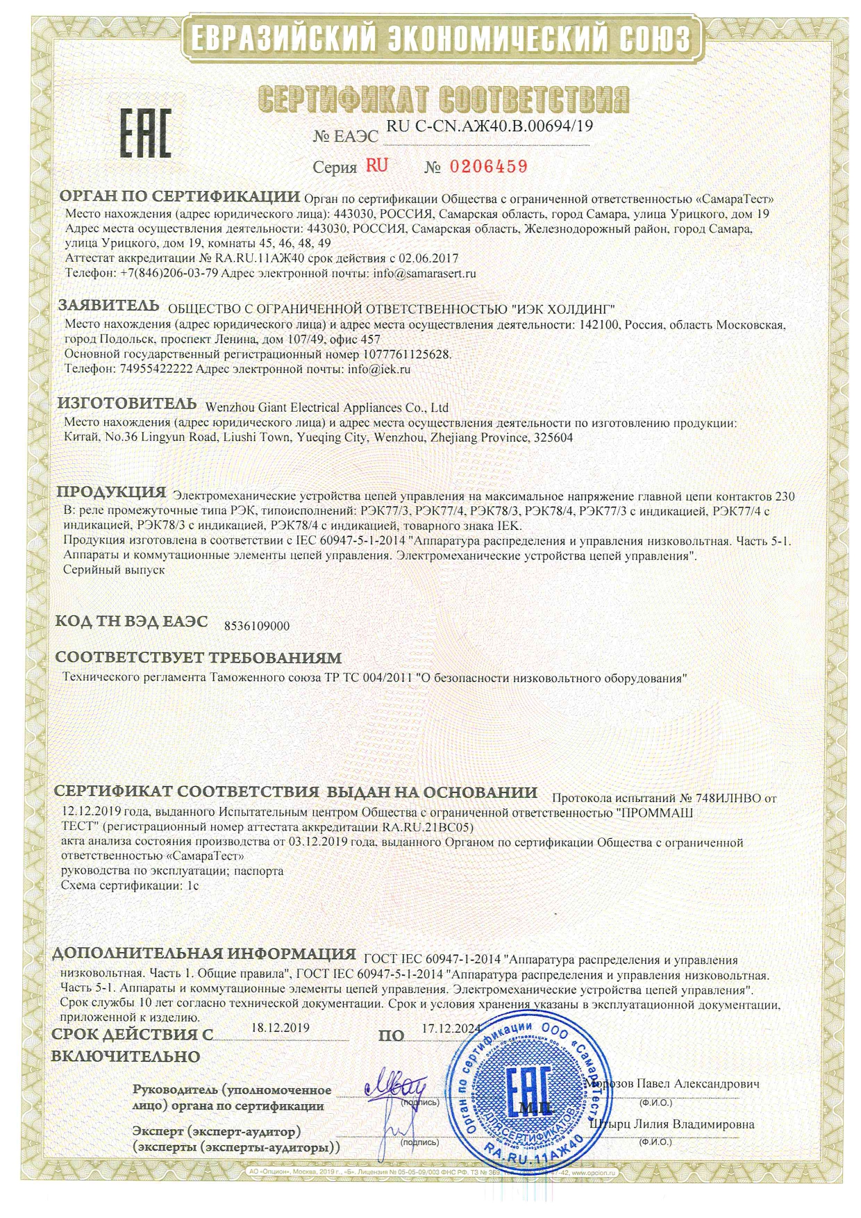 Реле РЭК78/3(MY3) с индикацией 5А 230В АC ИЭК