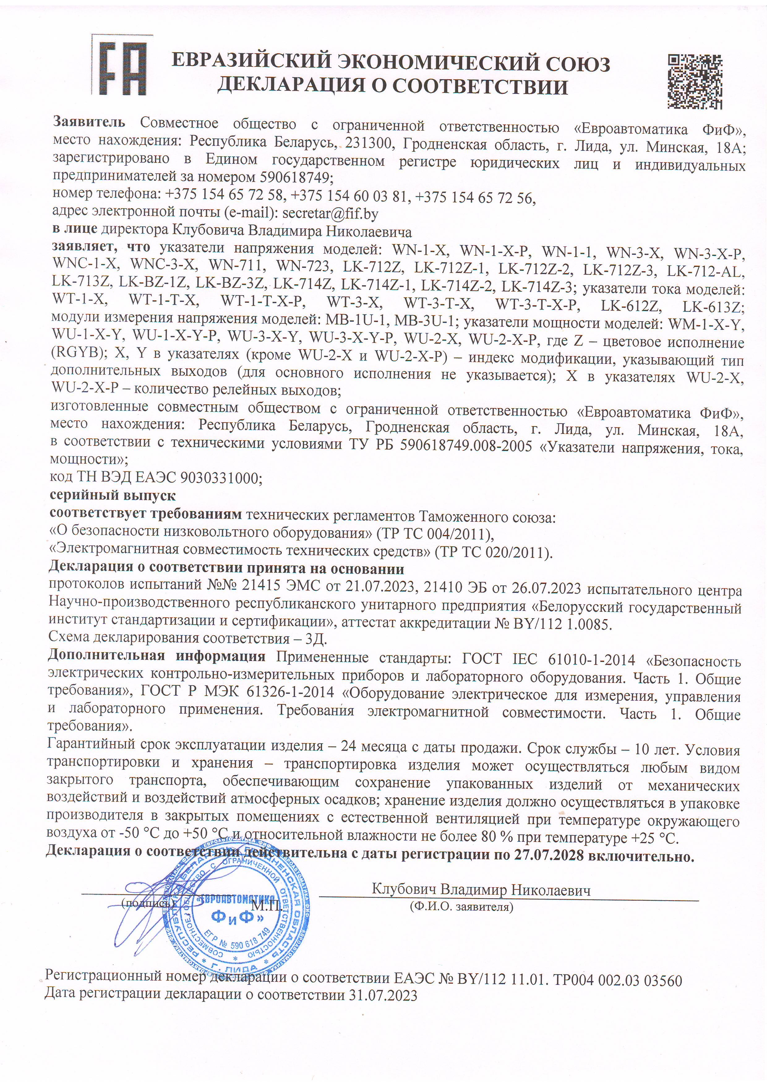 Наличия напряжения индицируется свечением светодиода на лицевой панели.