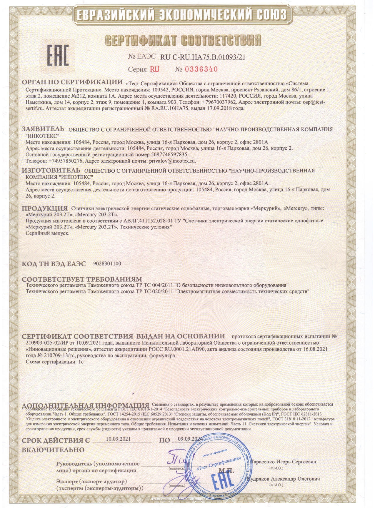 Счетчик электроэнергии Меркурий-203.2Т LBO
