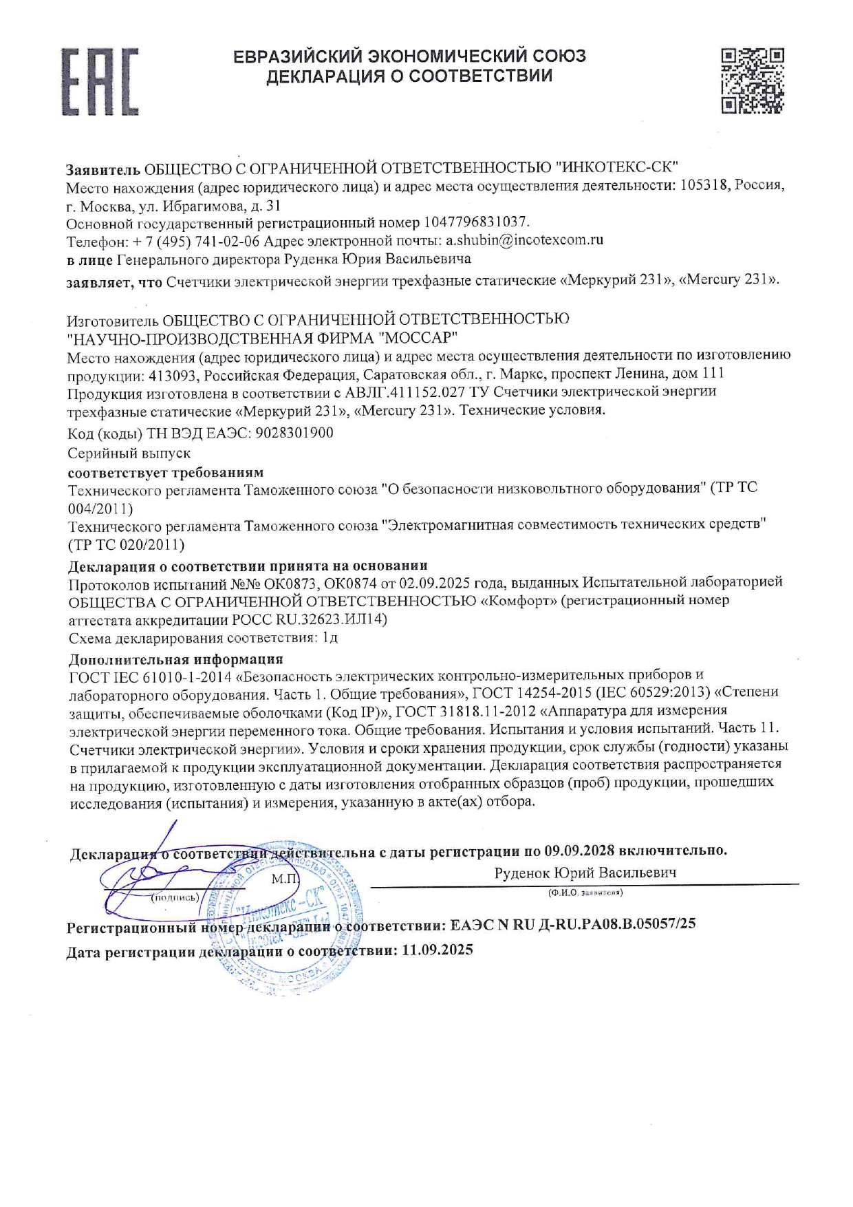 Счетчик электроэнергии Меркурий-231 АМ-01