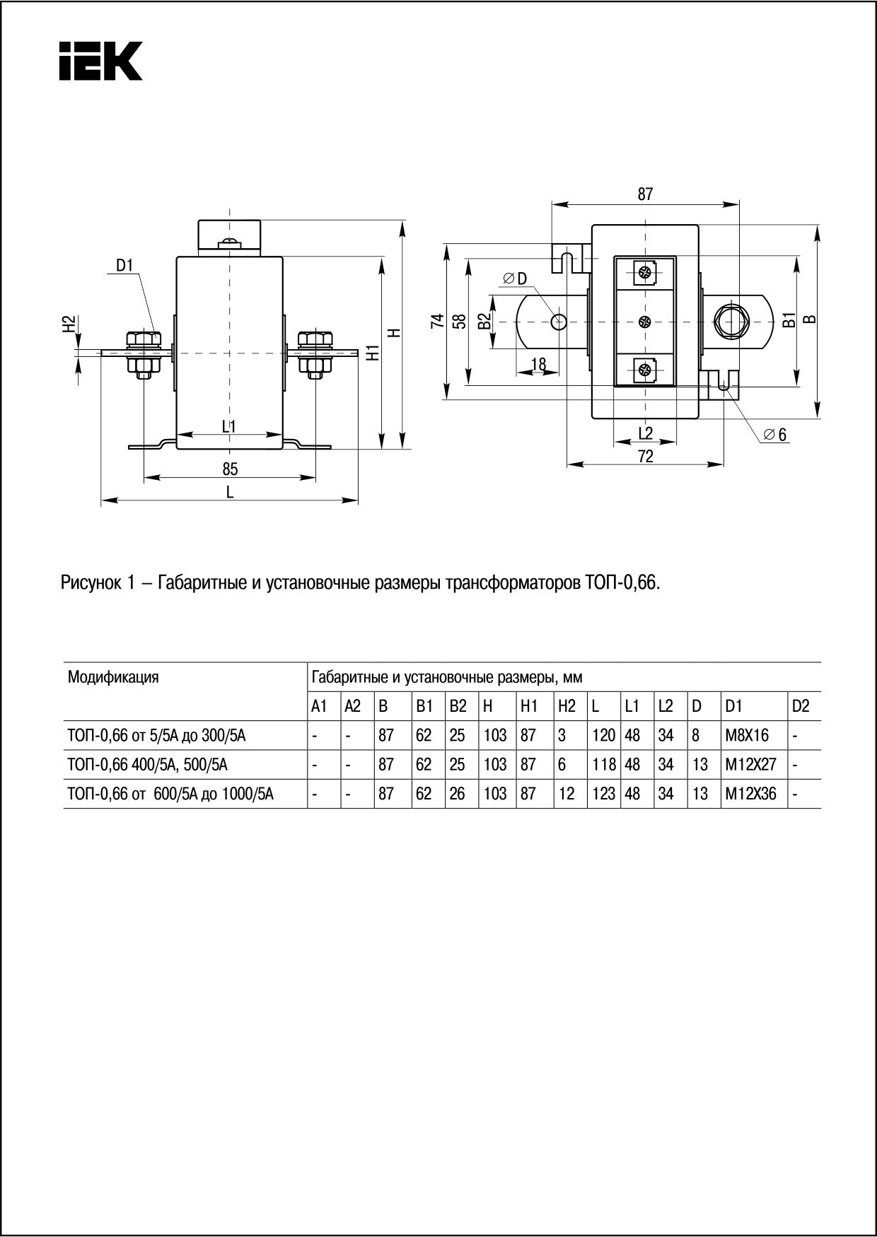 Трансформатор тока ТОП-0,66 50/5А 5ВА класс 0,5 ИЭК