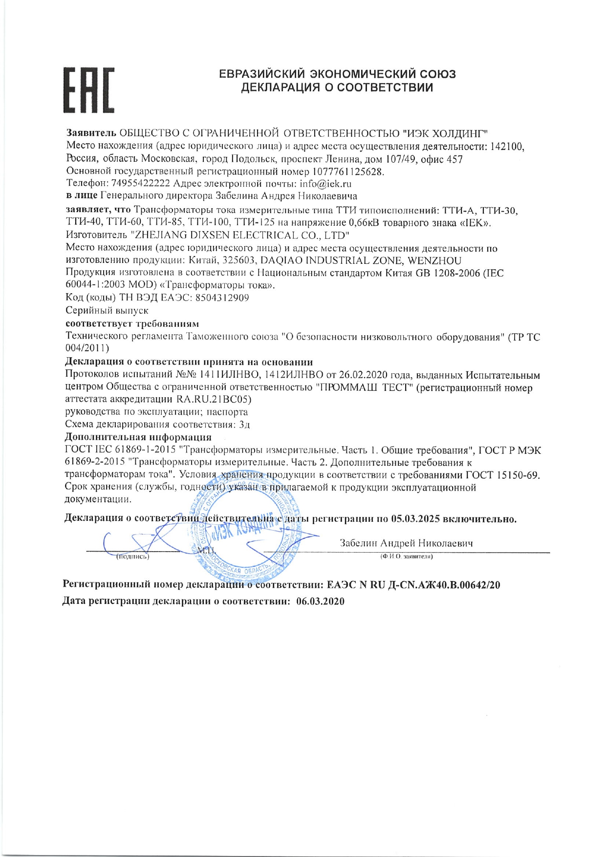 -В комплект каждого трансформатора входит крышка, которой закрываются клеммы вторичной обмотки. Также трансформаторы ТТИ-А комплектуются винтами и гайками для крепления проводников. Трансформаторы ТТИ-30/ТТИ-125 комплектуются скобой для крепления шины в окне трансформатора.