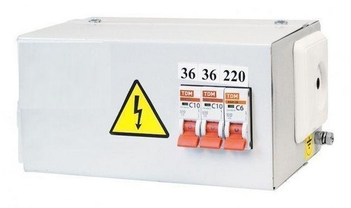 Понижающий навесной трансформатор ЯТП 0.25-220/36 характеризуется естественным воздушным охлаждением. На металлическом корпусе трансформатора расположены автоматические выключатели и штепсельная розетка.