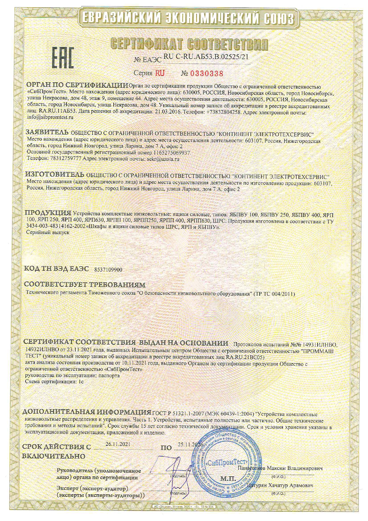 ШРС-1-04-7-54-УЗ-001-Узола (8х100) 400А IP54