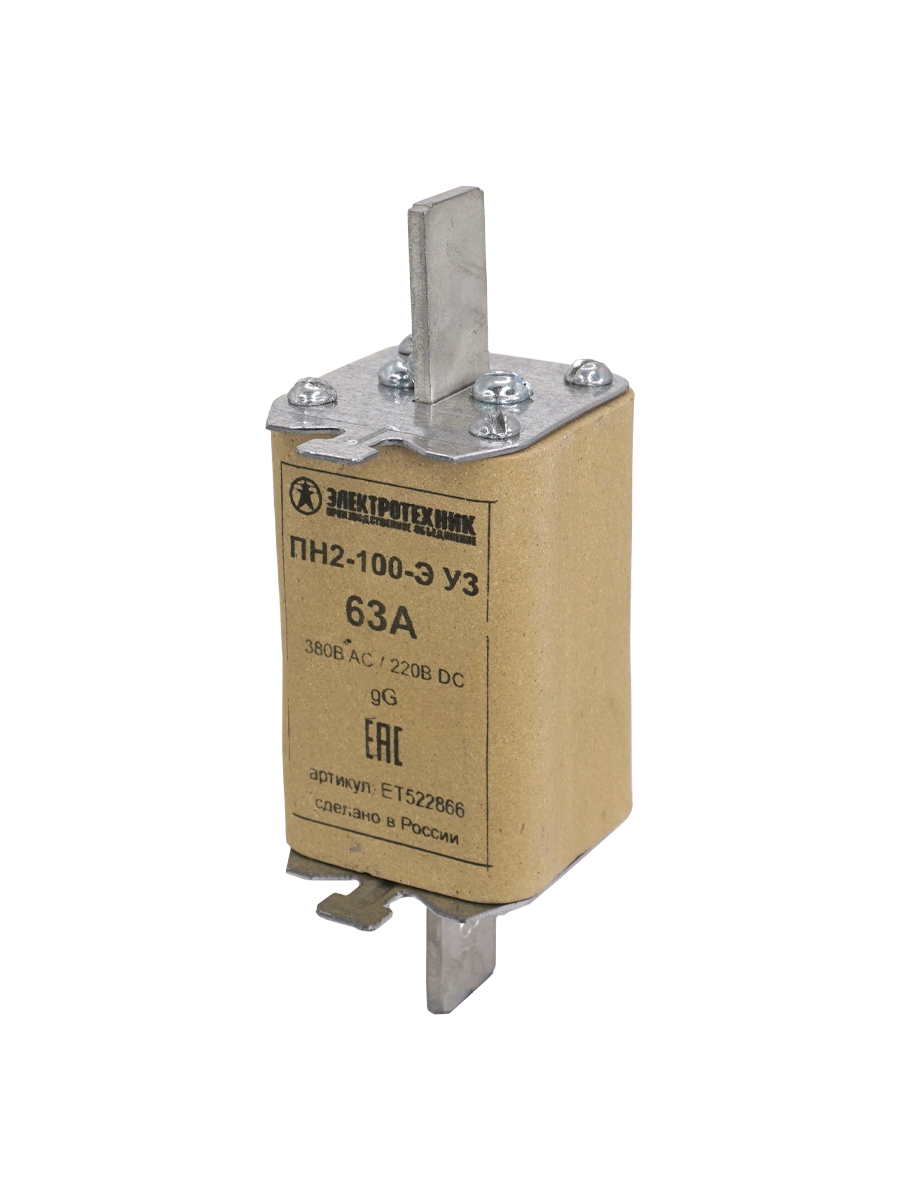 Плавкая вставка ПН2-100-Э У3 на 63А, стальные ножи (ЭТ)