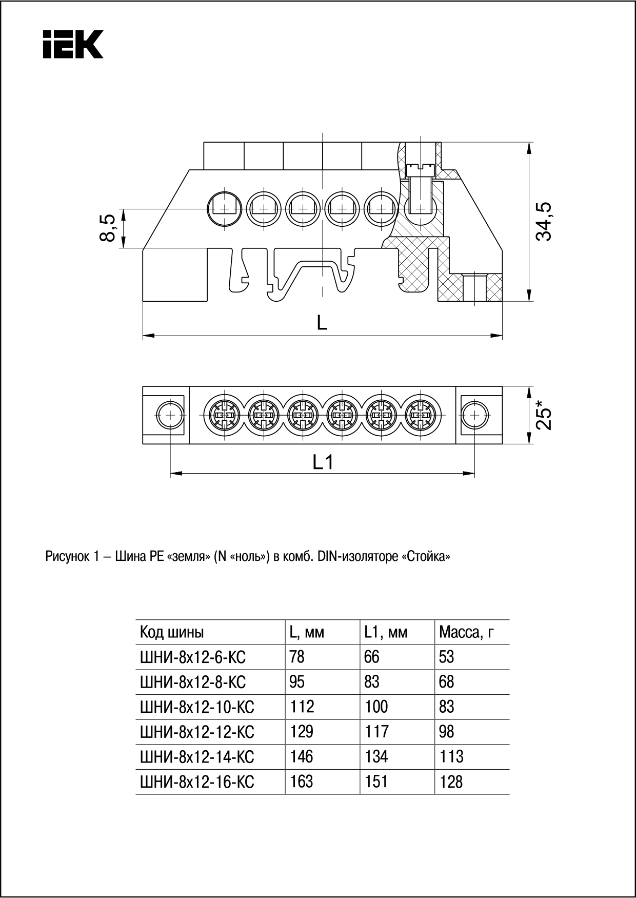 Шина N ноль в комбинированном DIN-изоляторе Стойка ШНИ-8х12-14-КС-С ИЭК