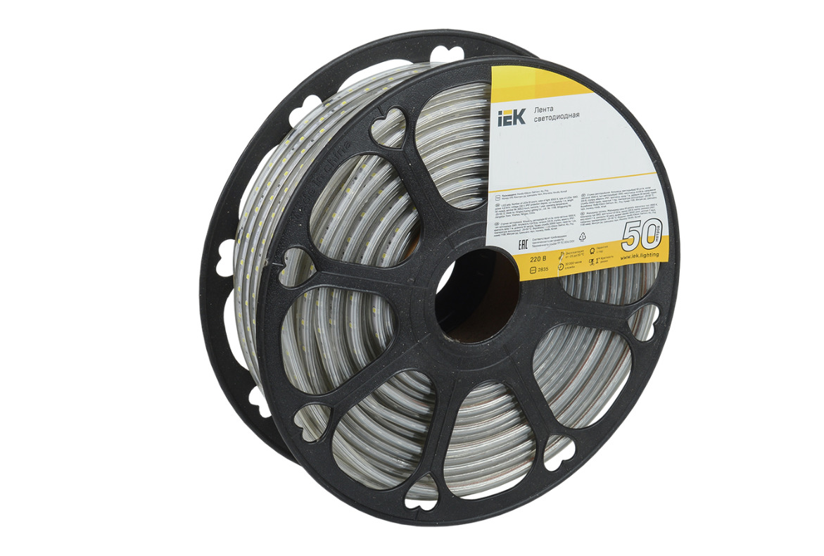 Светодиодная лента работает непосредственно от бытовой сети переменного тока напряжением 220В. Благодаря высокой степени защиты (IP67) и возможности последовательного подключения отрезков общей длиной до 100 метров светодиодная лента 220В IEK является отличным решением для архитектурной подсветки.