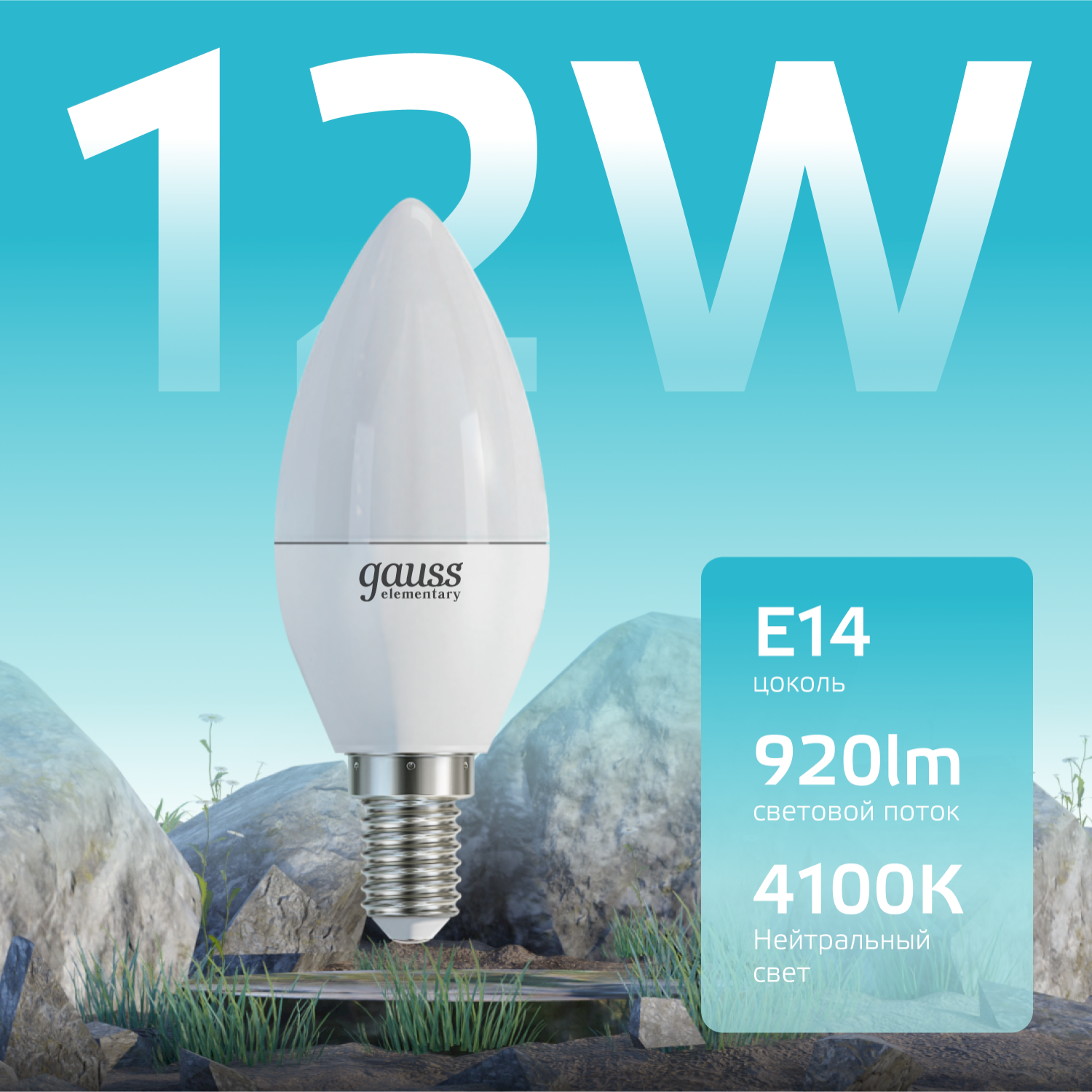 Лампа Gauss Elementary Свеча 12W 920lm 4100K Е14 LED 1/10/100