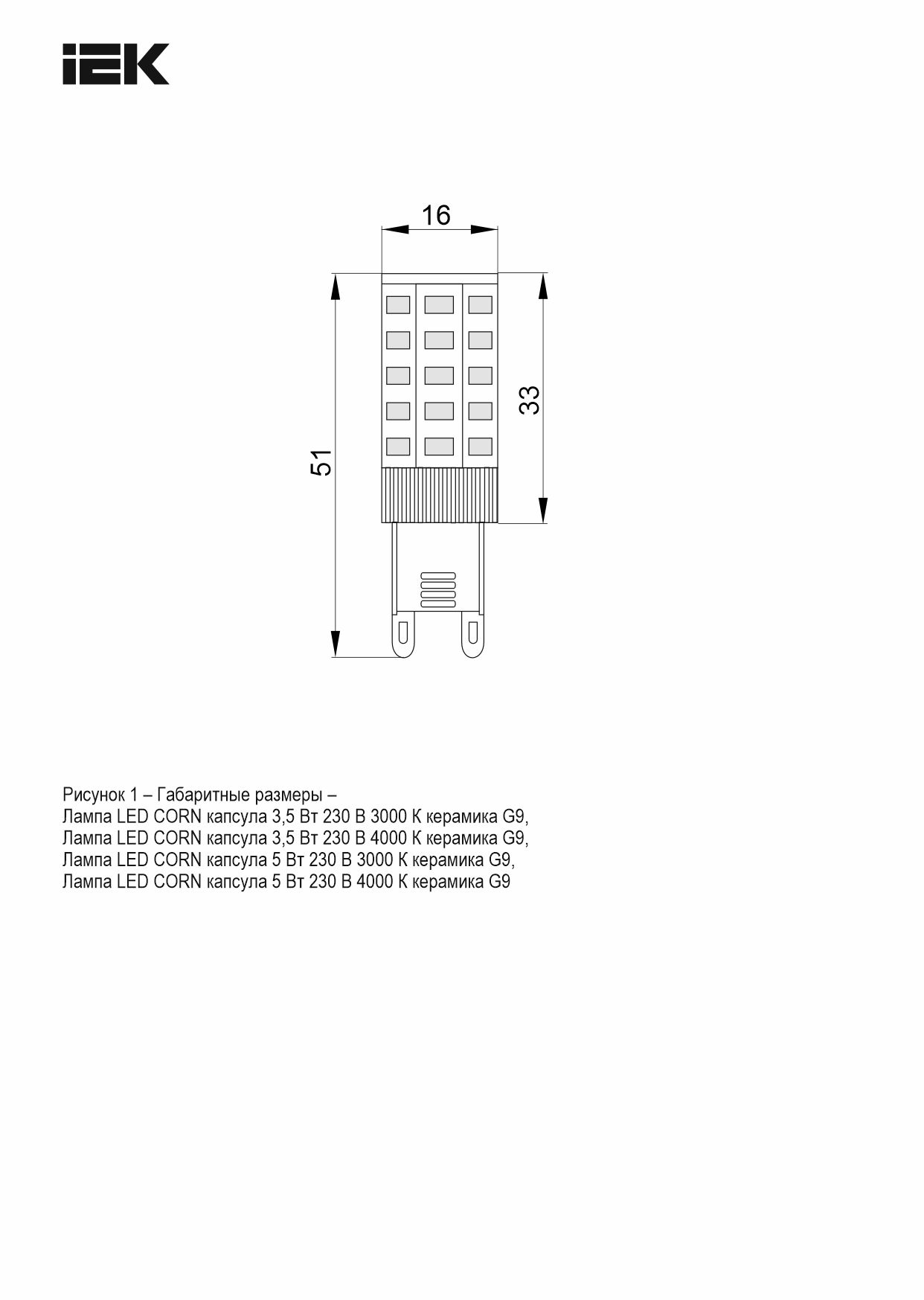 Лампа LED CORN капсула 5Вт 230В 4000К керамика G9 ИЭК