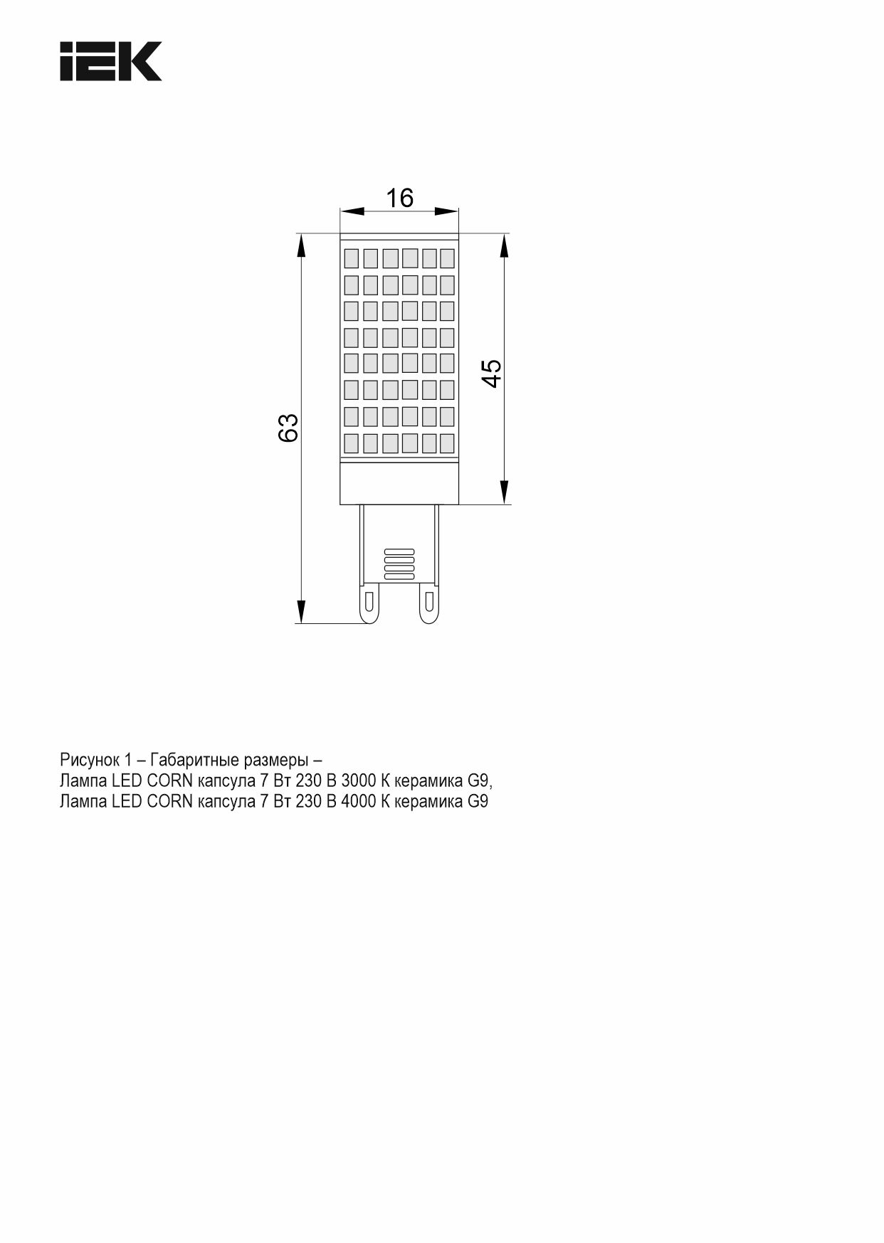 Лампа LED CORN капсула 7Вт 230В 4000К керамика G9 ИЭК