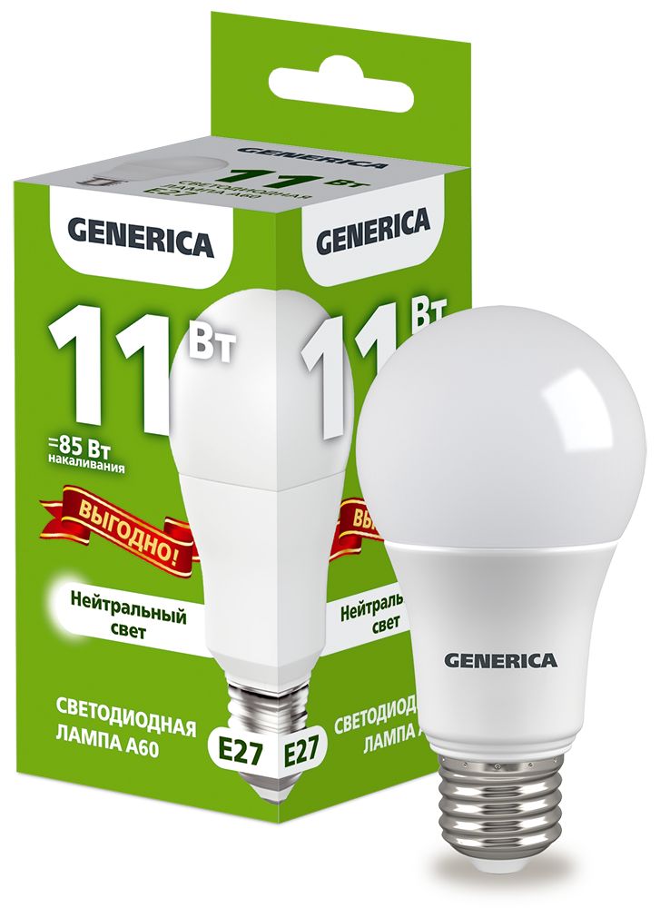 Лампа светодиодная A60 груша 11Вт 230В 4000К E27 ПРОМО GENERICA