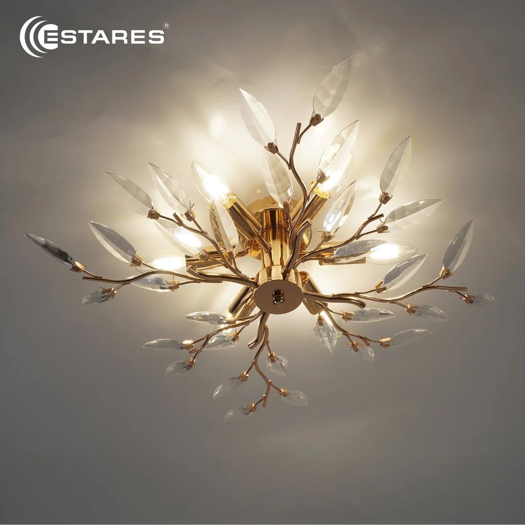 - Эстетика: золотой каркас и прозрачные кристаллы создают роскошный интерьерный акцент
