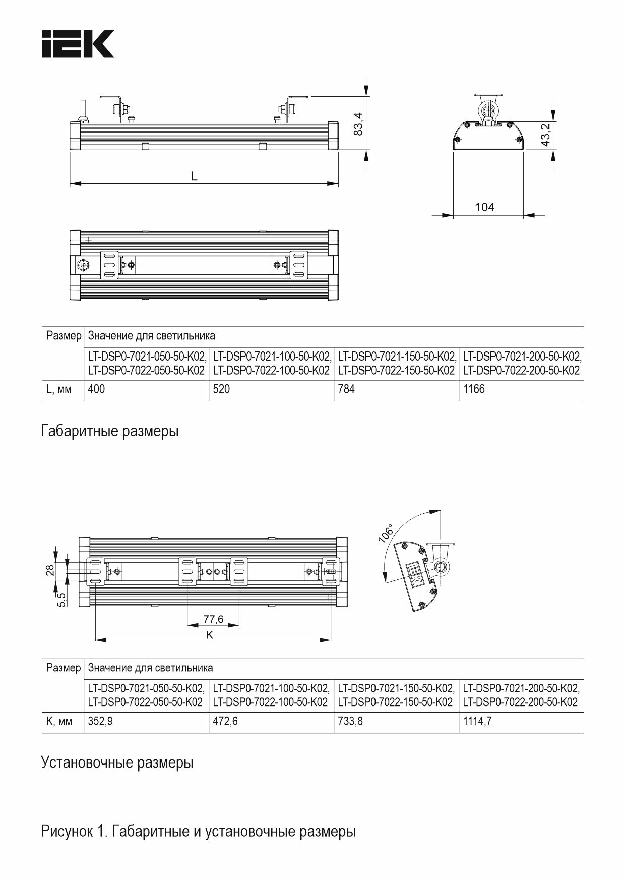 Универсальное крепление с возможностью установки крепежа по всей длине светильника и регулировкой угла наклона 0-160 °C.
