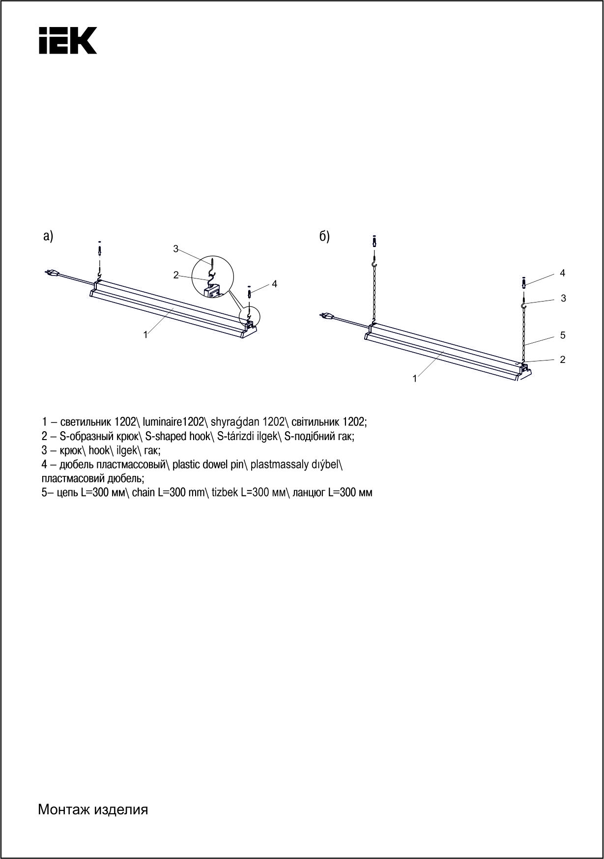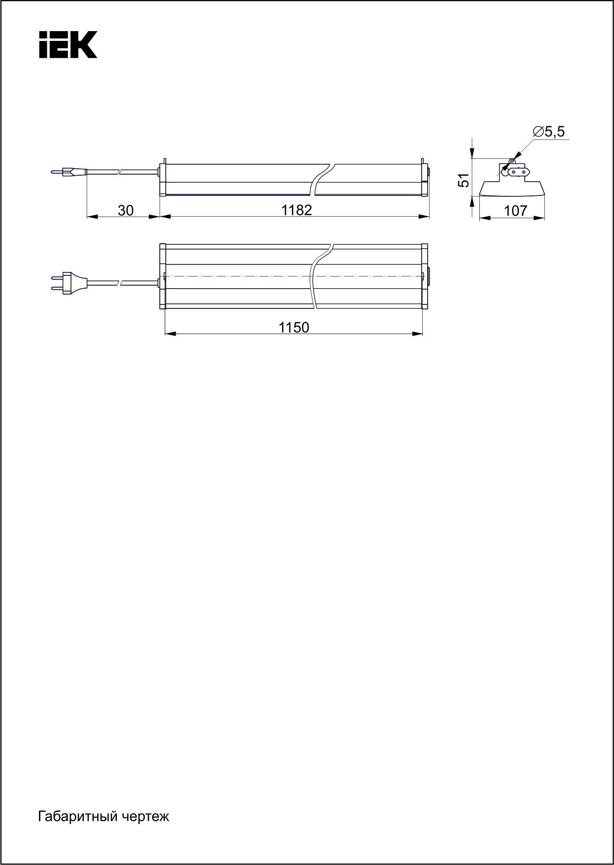 Светильник LED линейный 1201 36Вт 3000К 1200*107*52мм ИЭК