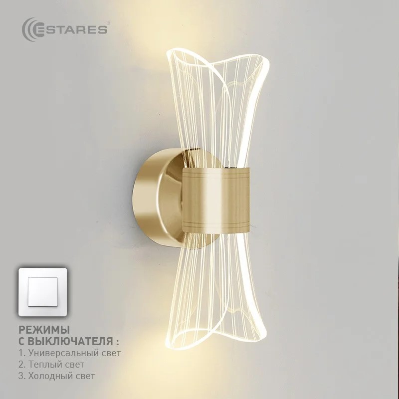 Светильник светодиодный управляемый, бра DIO 12W 2Y-ON/OFF-230*80*85-GOLD/CLEAR-220-IP20