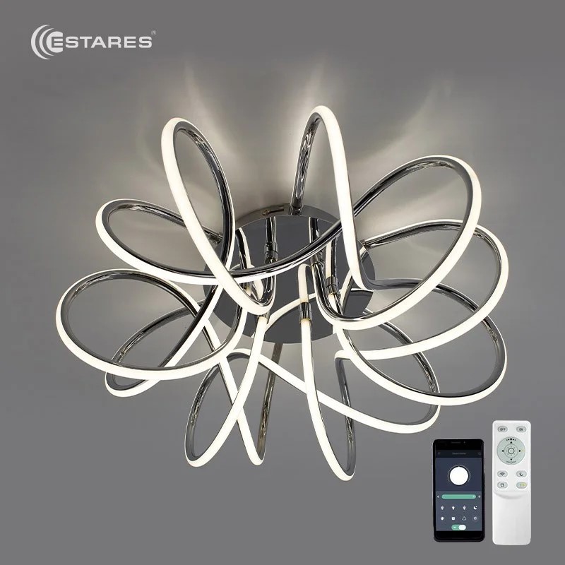 Светильник светодиодный управляемый LIANA MUSE 105W Estares предназначен для общего и декоративного освещения в жилых помещениях. Модель сочетает современный дизайн и интеллектуальные технологии управления через мобильное приложение, позволяя настраивать яркость и параметры освещения под индивидуальные потребности. Хромированная отделка и лаконичная форма делают светильник стильным элементом интерьера. Высококачественные LED-модули обеспечивают равномерное освещение без мерцания и длительный срок службы.