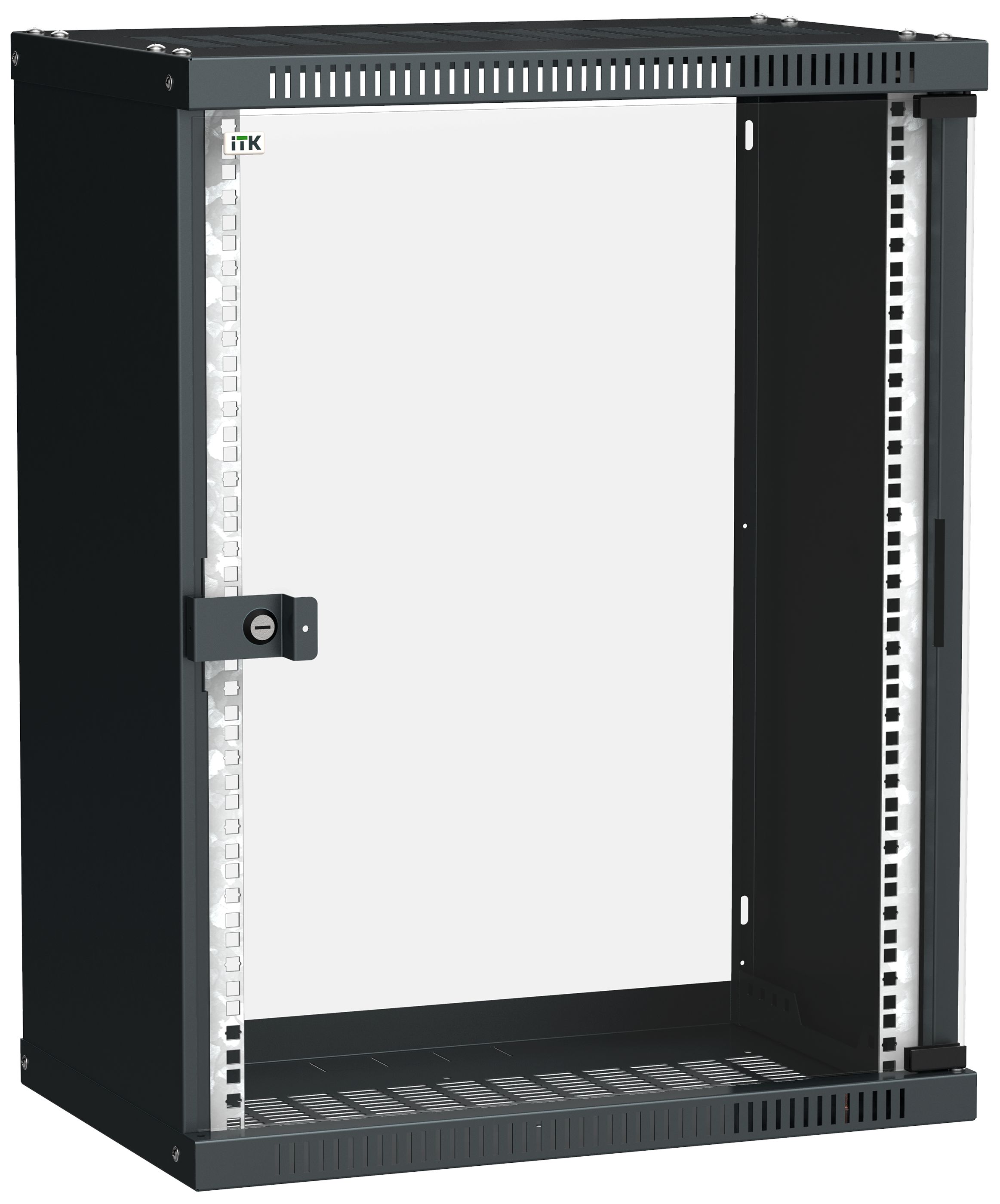 ITK Шкаф настенный LINEA WE 15U 550х350мм дверь стекло черный
