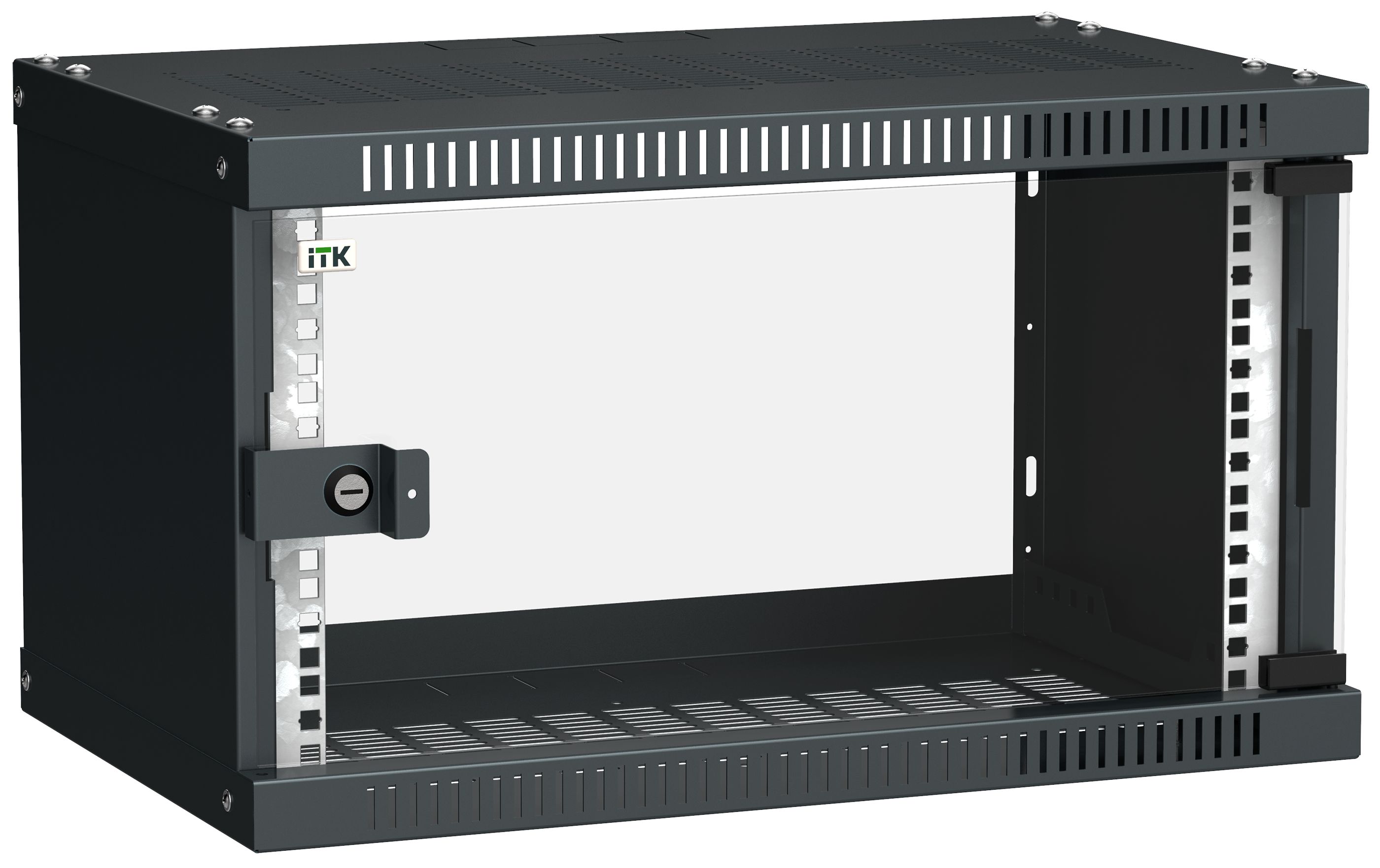 ITK Шкаф настенный LINEA WE 6U 550х350мм дверь стекло черный