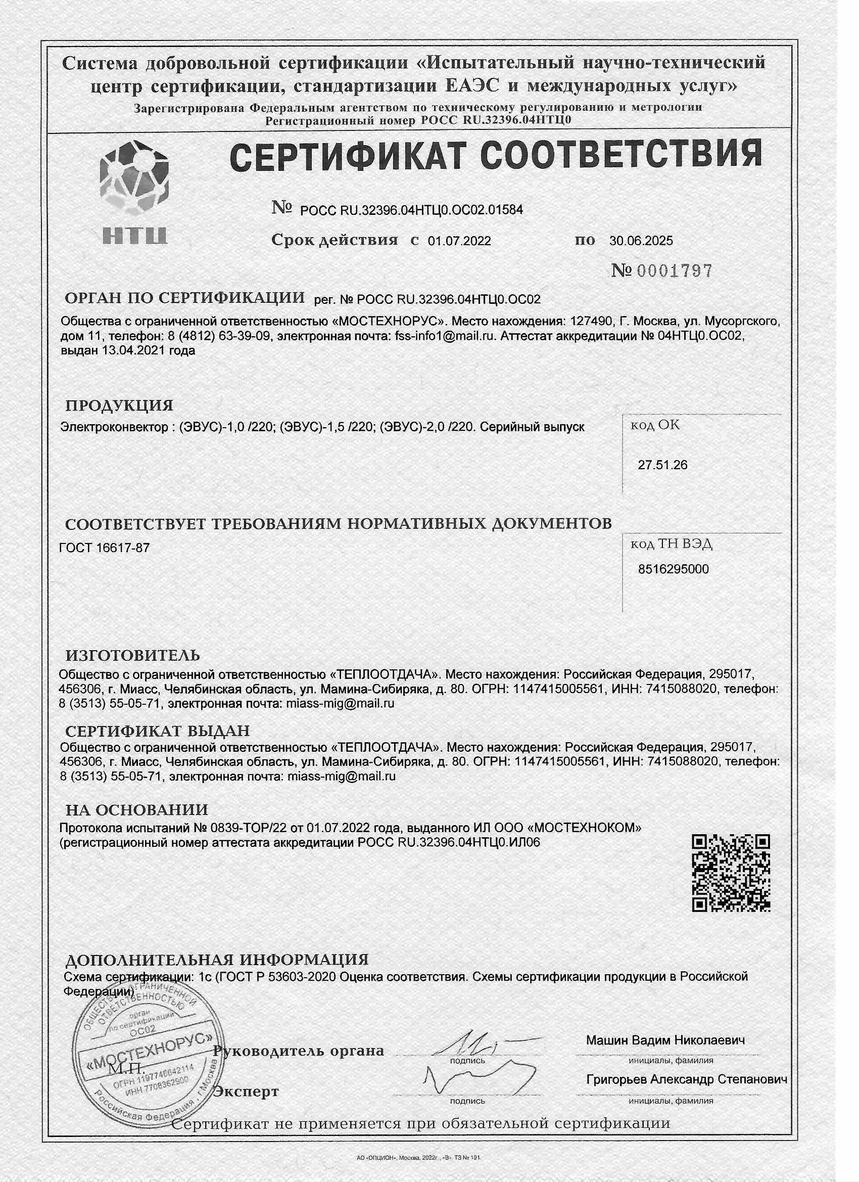 Электроконвектор ЭВУС-2,0 кВт (ТО)