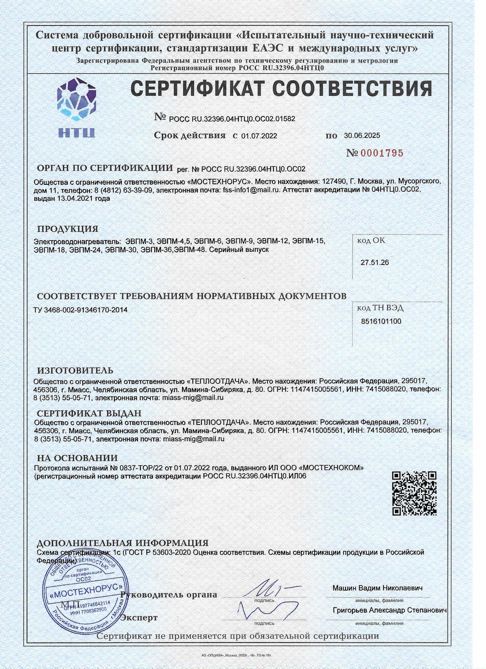 Электрокотел ЭВПМ-9 кВт с переключением (ТО)