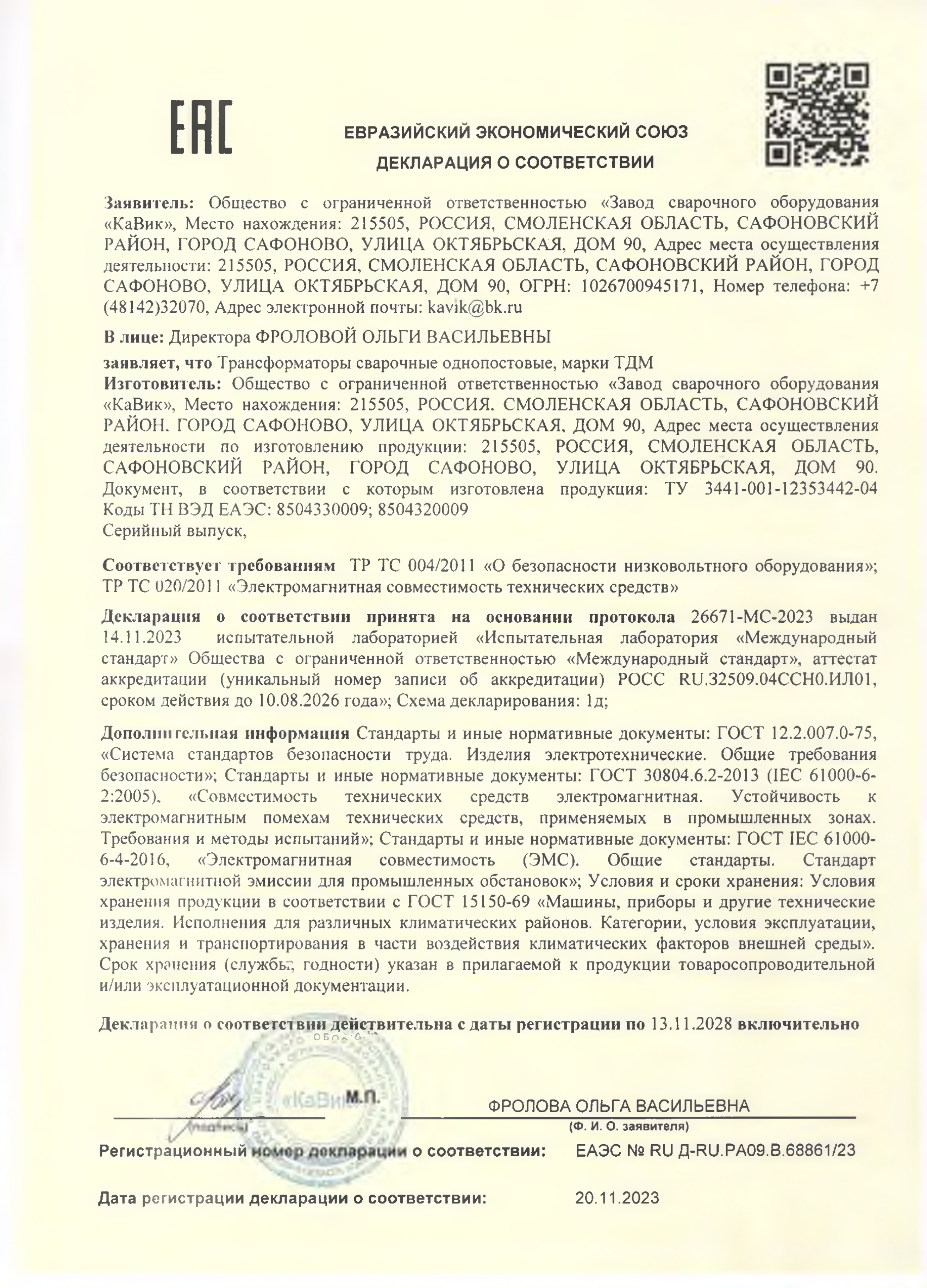 Продукция КаВик соответствует требованиям ТР ТС и базовым стандартам безопасности для электротехнического оборудования
