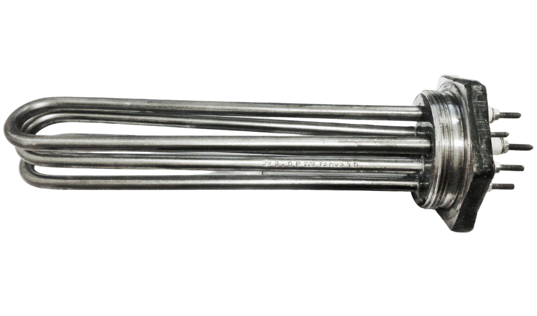 Конструкция ТЭНБ-15 представляет собой объединение нескольких электронагревателей, соединенных между собой фланцем. Его крепление на оборудовании осуществляется с помощью трубной резьбы G 2 1/2. Также возможно исполнение блоков с другим способом монтажа. Для подключения устройства к сети питания можно использовать два любых контактных стержня нагревателей, которые не соединены друг с другом перемычками.